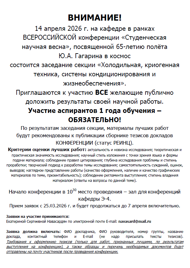 ГДЕ: конференц-зал кафедры Э4 МГТУ им. Н.Э. Баумана: