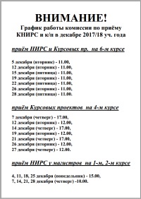 График работы комиссии по приёму КНИРС и к/п в январе 2017/18 уч. года . . .