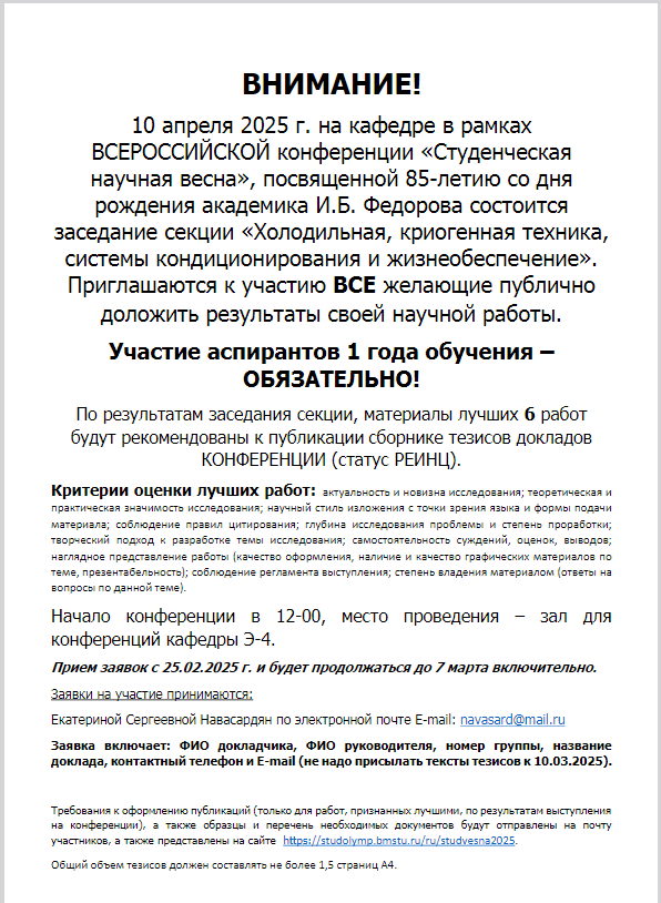 ГДЕ: конференц-зал кафедры Э4 МГТУ им. Н.Э. Баумана: