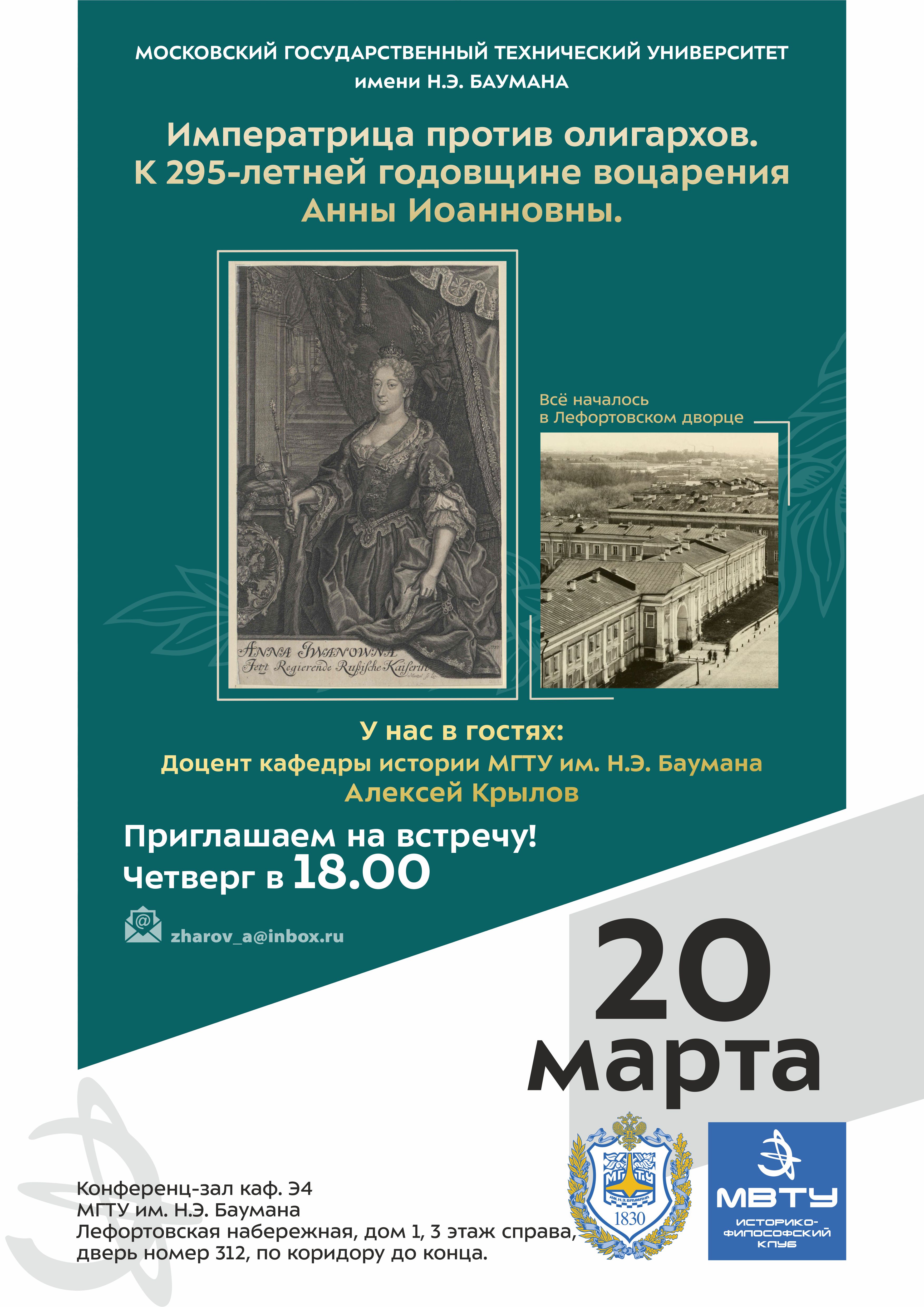 «Императрица против олигархов. К 295-летней годовщине воцарения Анны Иоанновны.